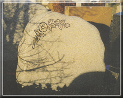 Natursten i Paradis granit Bogstaver: Sandblæst type 2, med sort farve |